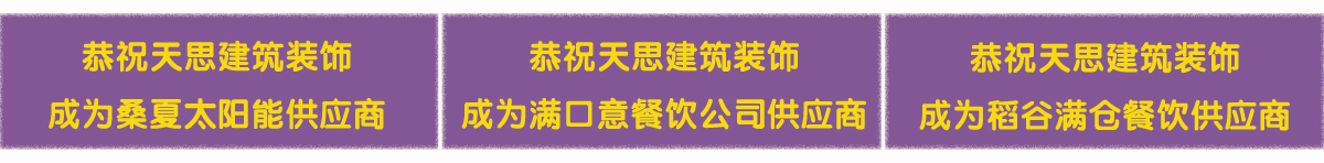 天思裝飾為您提供方便的一站式服務,不僅能夠提供設計與施工服務,還為您提供建材和家具。我們與眾多建材廠商、家具廠商有著密切合作關系,品類廣泛,物美價廉,滿足您的需求。